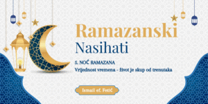 Vrijeme, braćo i sestre, ne čeka nikoga. Još jučer smo govorili: “Kad će Ramazan?” A evo nas već u petoj noći. I doći će brzo dan kada ćemo reći: “Prošao je.” Proći će kao bljesak, a ostat će samo ono što smo u njemu učinili.